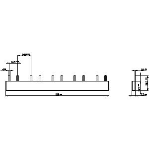 Stiftsammelschiene berührungssicher, 10mm2 3-phasig, 214mm lang schneidbar, mit Endkappen