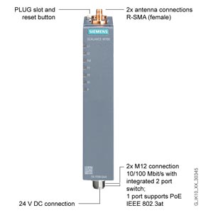 SCALANCE W734-1 RJ45, on the side with antenna connection cable