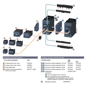 Sirius, reversing combination, S0-S3, with mech. and el. interlock, AC