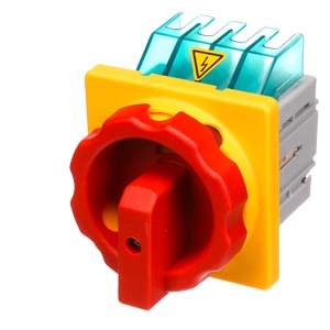 3LD2, BG 1 16/20A, Fronteinbau Drehantrieb 66x66 Schraubbefestigung 48x48, 3 polig, Drehantrieb rot/gelb abschließbar "0"