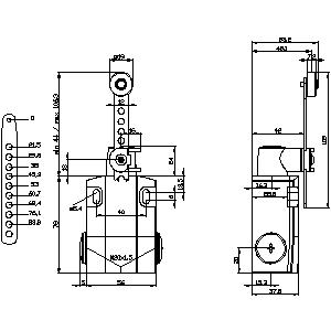 Positionsschalter mit Schwenkhebel, längenverstellbar mit Rasterbohrung, Breite 56mm