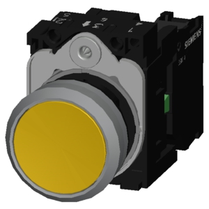 SIRIUS ACT Komplettgerät Drucktaster, Metall, Kunststoff, unbeleuchtet, flacher Druckknopf, tastend, gelb, Schraubanschluss, 1S